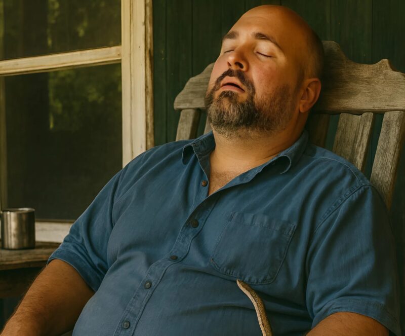 It was the kind of deep, exhausted sleep that comes after a long and demanding day. The man had settled into his favorite wooden rocker