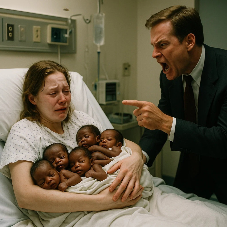 In a hospital room filled with the cries of five newborns, a young mother’s joy was shattered not by exhaustion, but by betrayal. Her partner,
