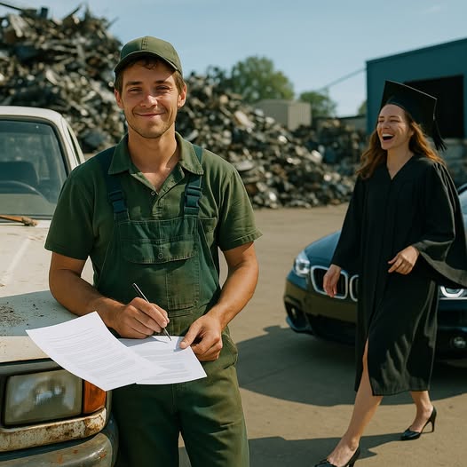 I stood in the university parking lot, my clothes still smudged with grease from a morning spent repairing machinery. My wife, Naomi, had summoned me,