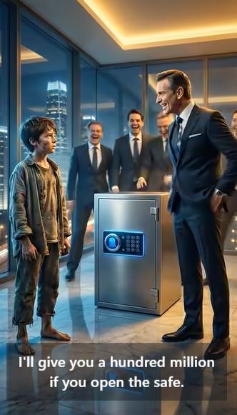 The laughter in the penthouse office was cruel and unending. Five powerful men, amused by a billionaire’s cruel joke, watched an eleven-year-old boy stare at