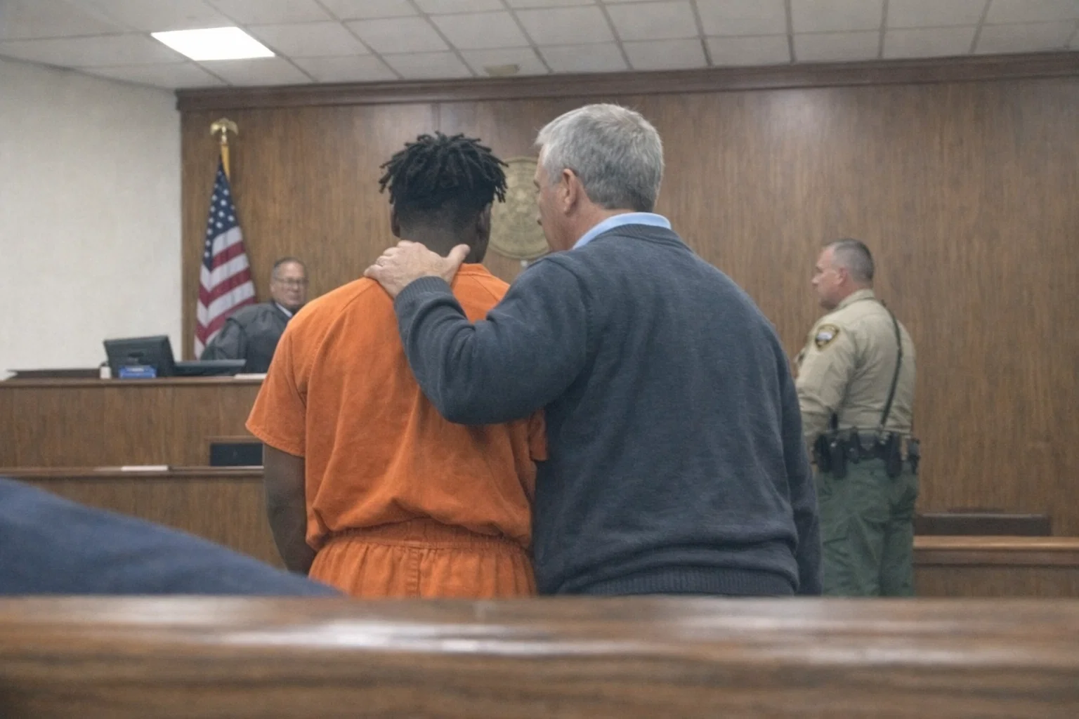 Keon sat at the defense table with his head down, hands trembling inside a pair of handcuffs that looked too big for his wrists.