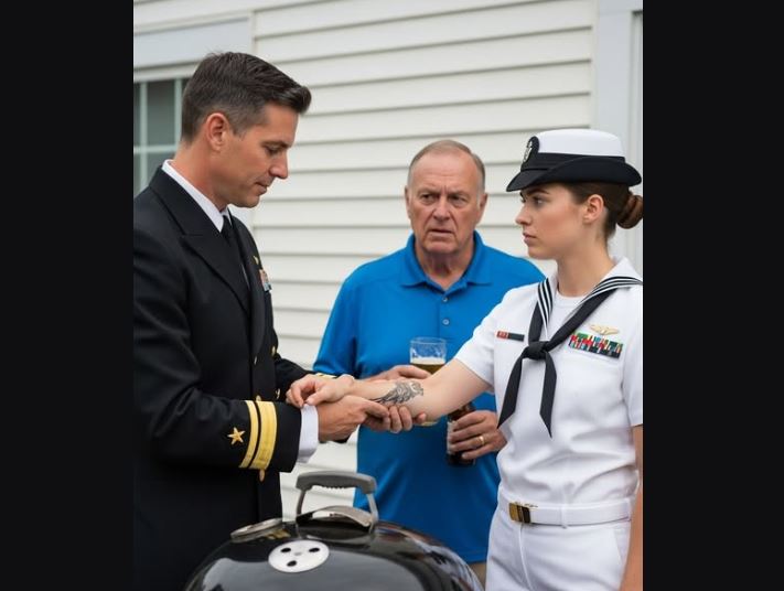 The sleeve of her dress whites didn’t reach her elbow. The small tattoo there—ink she’d gotten in a moment when youth and loyalty outvoted regulation—peeked like a secret that had learned how to breathe in daylight.