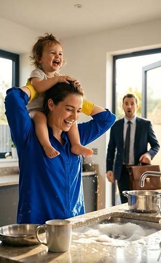Michael Reynolds had built a life of towering success, but in the quiet aftermath of his wife’s death, it all felt hollow. His grand home near San Diego was a silent museum to his grief, and his three-year-old daughter, Ava, had retreated into a wordless world. Expensive therapies failed to reach her. One afternoon, a feeling he couldn’t explain pulled him home early. He pushed open the kitchen door and froze. Ava was standing on a chair beside Paige, the new household assistant, their hands together in a sink full of soapy water. Ava was laughing—a sound Michael hadn’t heard in months—and speaking in clear, happy sentences. Overwhelmed, he retreated to his study, his emotions a turbulent mix of gratitude and a painful, jealous confusion.