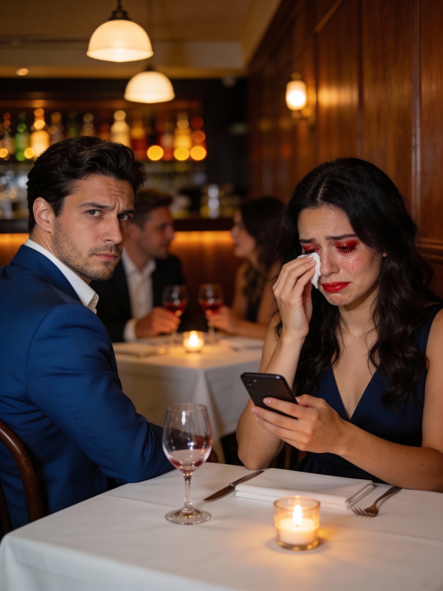 Her anticipation curdled into dread. A waiter offered water with a smile that didn’t reach his eyes.