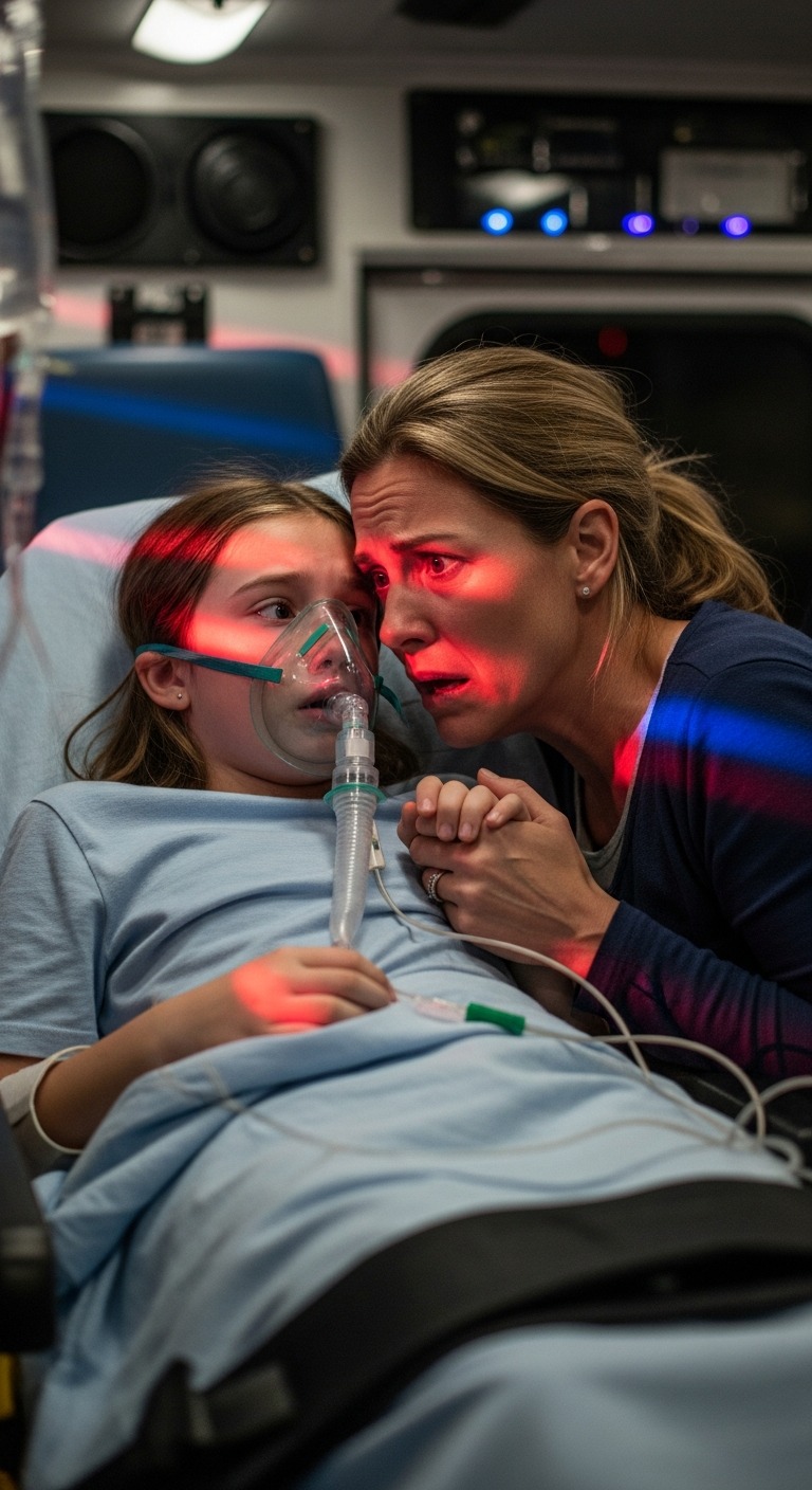 I saw my daughter being taken into an ambulance and ran to her side. On the stretcher, she squeezed my hand and whispered, trembling, “mom… please don’t tell dad.” I stayed with her all the way to the hospital. But when the doctor showed me the results, my whole world stopped.