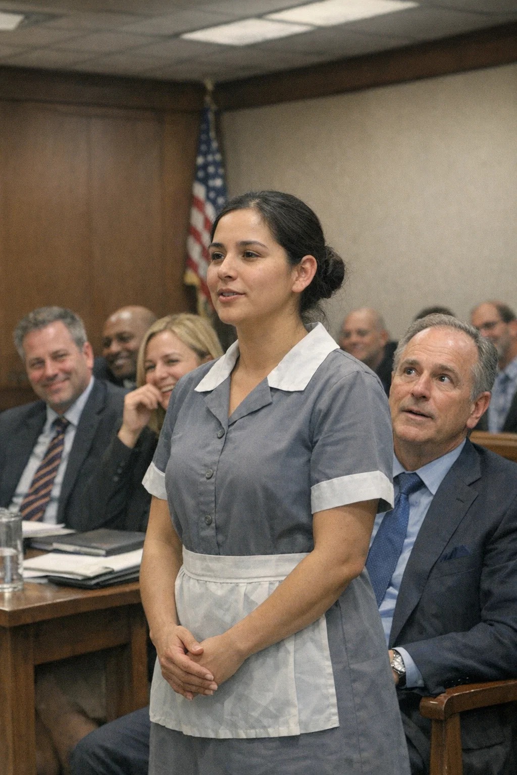 The Billionaire’s Attorney Never Showed Up in Court — Laughter Broke Out When a Quiet Housekeeper Stood and Said “I Can Represent Him,” but What