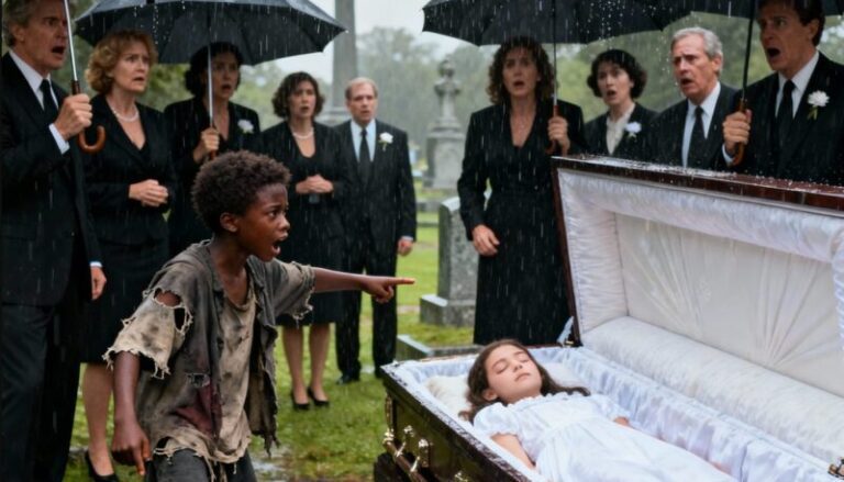 In a grand church filled with the city’s most powerful and wealthy people, a billionaire father stood in silence beside a coffin. His daughter, Emily,