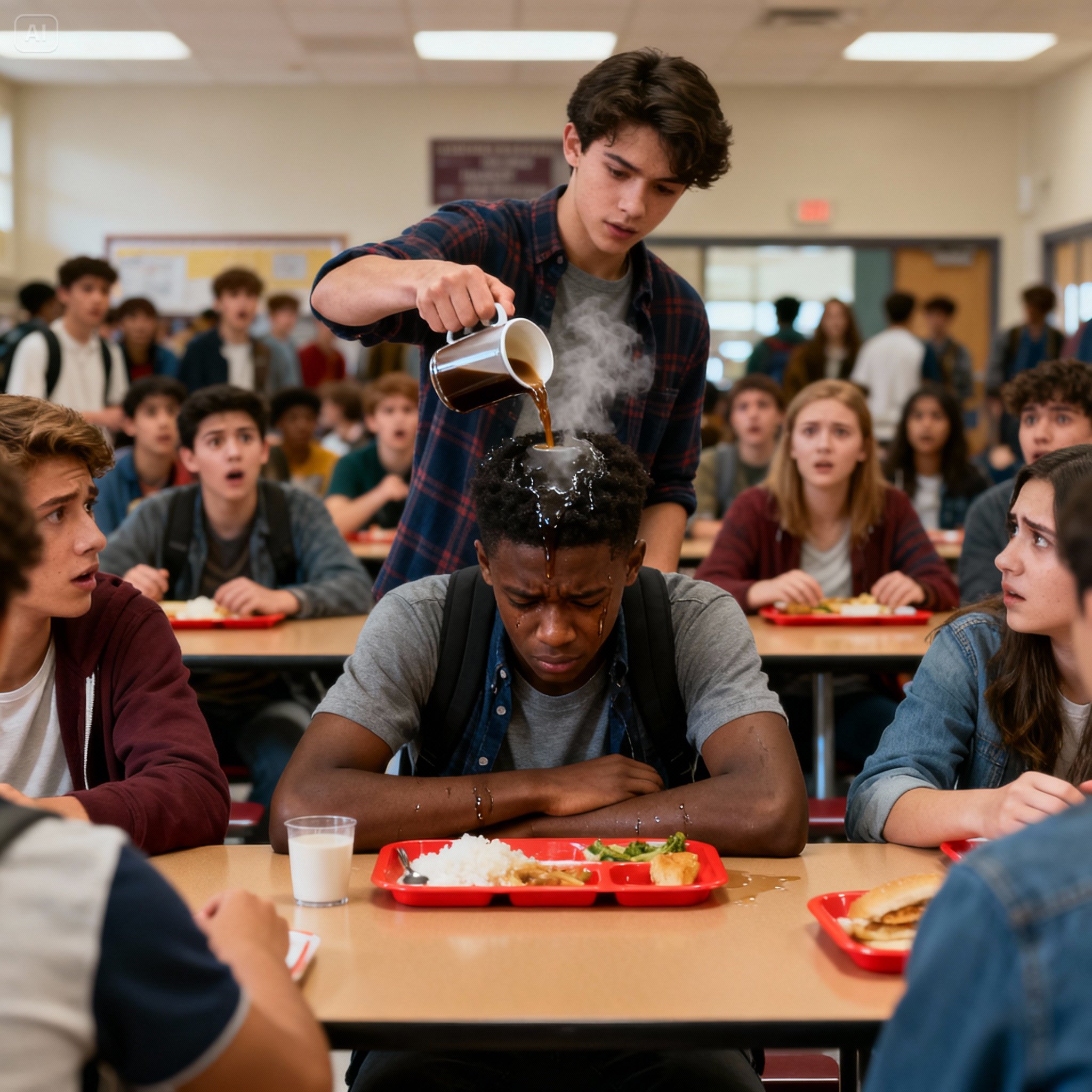 Bully Pours Hot Coffee on the New Black Student — Seconds Later, He Realizes His Big Mistake. The cafeteria buzzed with chatter that Monday morning