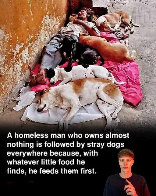 He sleeps on the streets and owns almost nothing, yet wherever he goes, homeless dogs follow. At first, we couldn’t understand why so many strays