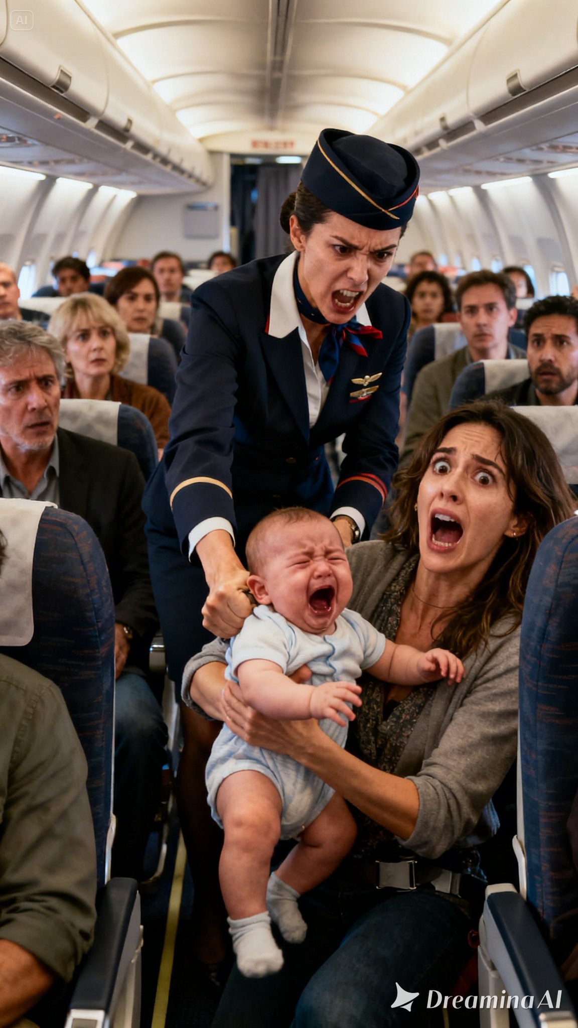 I was holding my 3-month-old baby on a flight home to reunite with my husband when the flight attendant announced the plane was overbooked. Silence