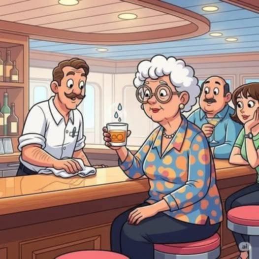 A lady went to the bar on a cruise ship and ordered a Scotch with two drops of water. The bartender gave her the drink,