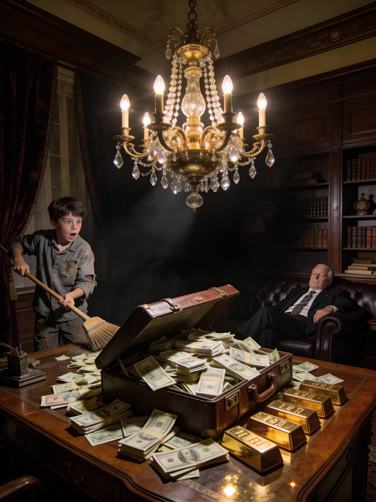 Feigning sleep beside a suitcase of money to test the maid’s son, the billionaire froze when he read the note the boy left instead of
