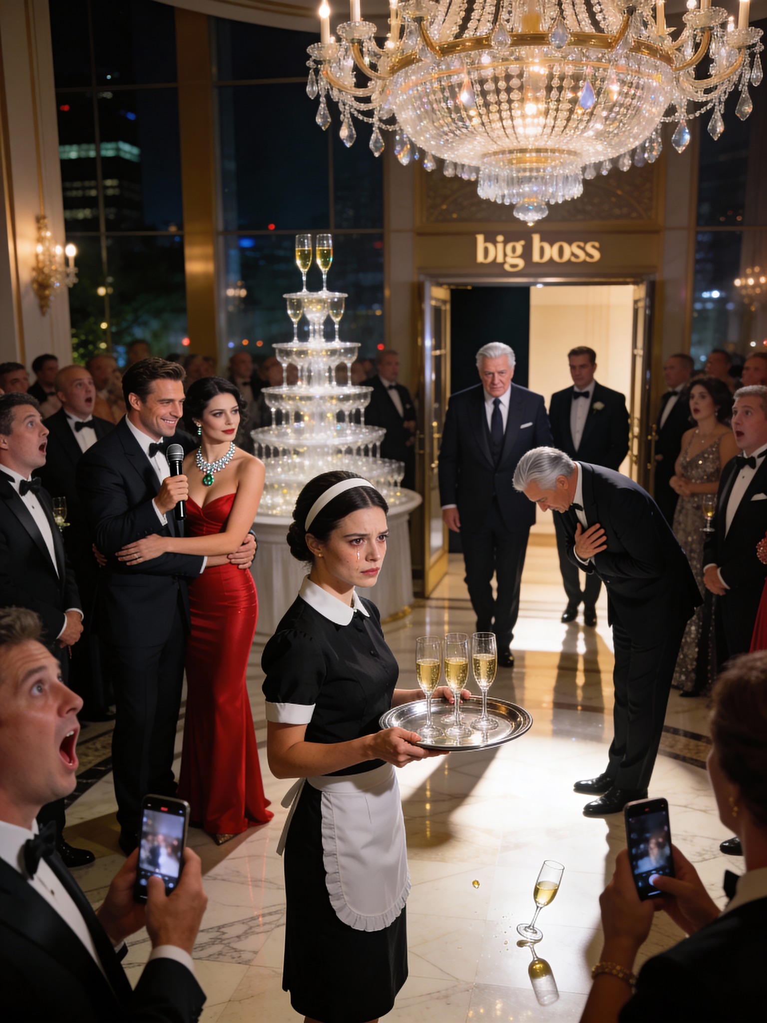 My husband forced me to wear a maid’s uniform to his promotion party, then made me stand behind a tray of champagne while he paraded