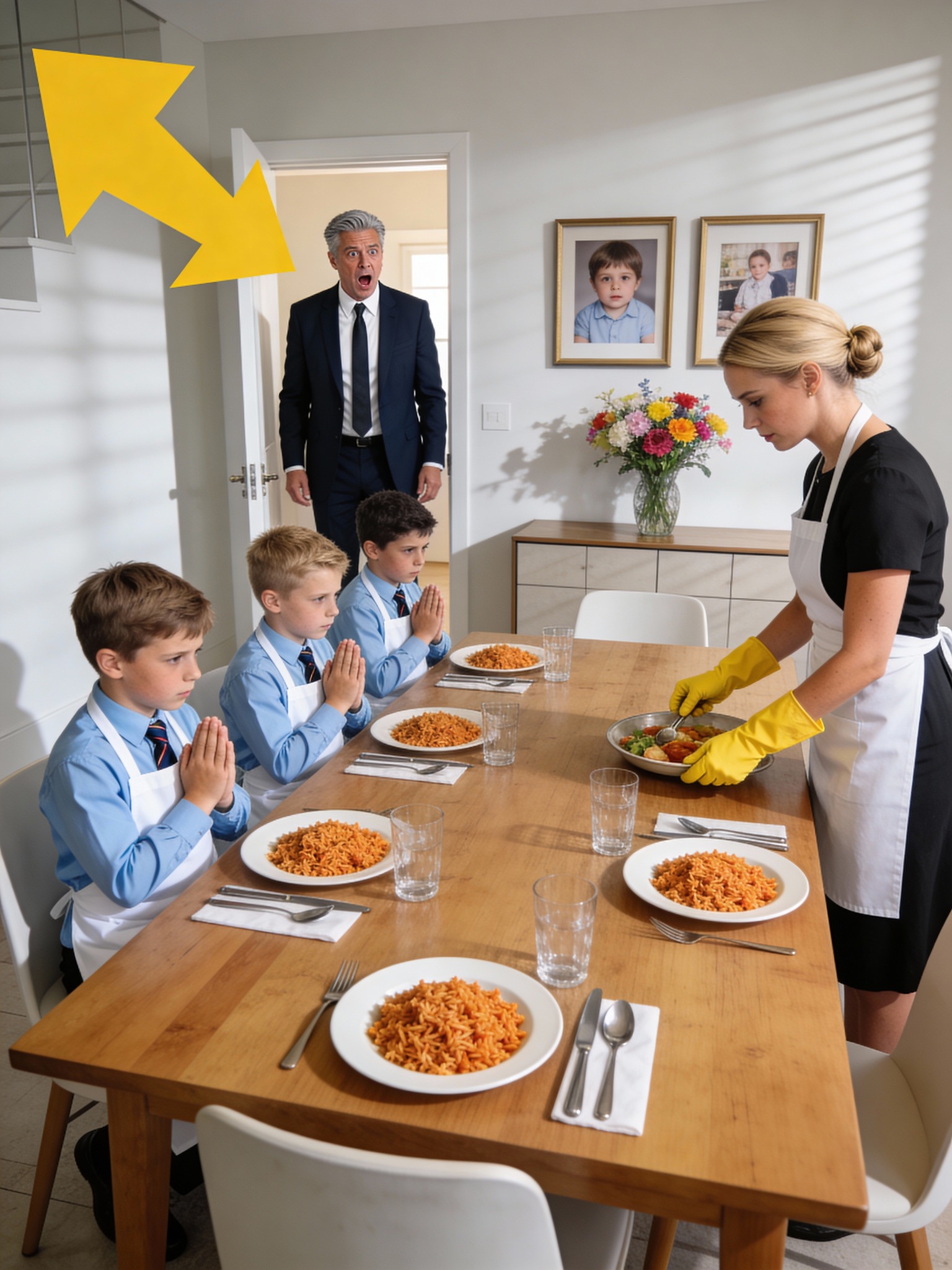 The maid secretly dyed a pot of cheap rice yellow and called it “gold rice” so the four little boys would feel like princes… But