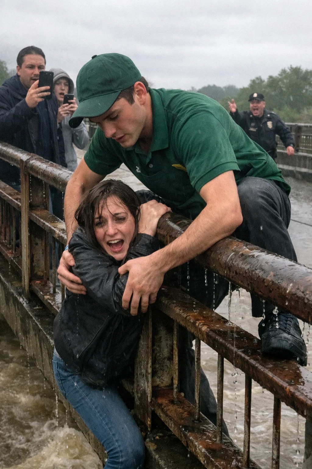 “If I Let Go, Promise You’ll Hold On,” – A Grocery Store Worker Climbed Over a Flooded Bridge to Save a Woman Clung to a