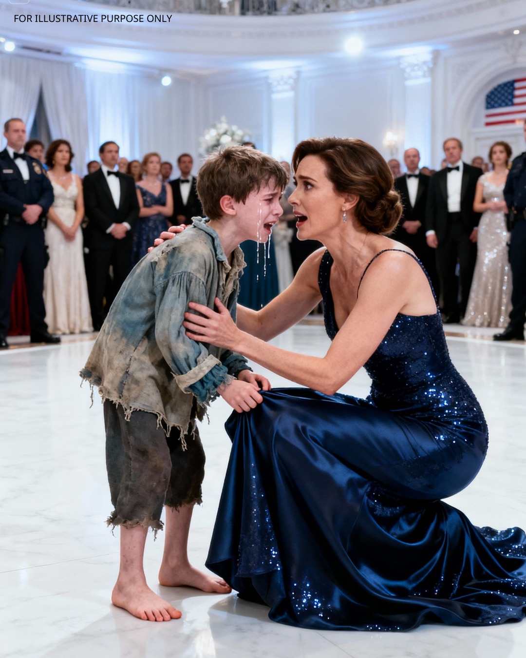 In the Middle of a Glittering Gala, a Billionaire Woman Knelt Before a Barefoot Child — Until He Whispered, ‘My mom told me to find