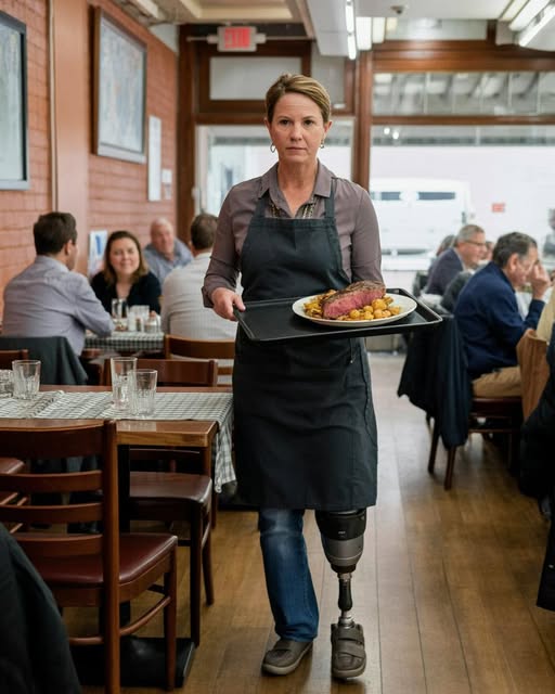 Every shift at the bistro always started the same way. I would step through the side entrance at exactly 4:45 in the afternoon, my apron already tied around my waist, glance over the reservation sheet, exchange a few quick words with Jenna at the host stand, and then begin moving across the dining room with the distinct rhythm my prosthetic made against the polished hardwood floors. Click, thud. Click, thud. The sound wasn’t particularly loud in itself, but in a place where people paid extra for soft lighting and a carefully curated quiet atmosphere, any irregular noise stood out—and mine always did.